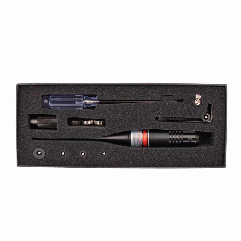 Su funcionamiento es sencillo, el colimador se inserta en la boca del cañón mediante pequeños adaptadores incluidos, ajustados según el calibre de tu arma.