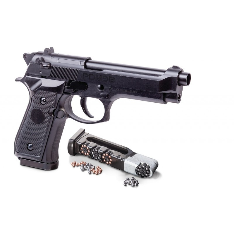 La PDM9B permite alternar fácilmente entre balines y BBs gracias a su selector, y su construcción metálica con retroceso simula sensaciones similares a una pistola real.