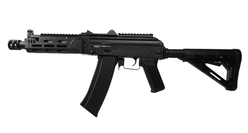 Inspirada en la icónica AK74u, esta versión cuenta con una culata táctica M4 y una construcción totalmente metálica y ligera, combinada con un guardamanos CNC para un aspecto moderno y agresivo.