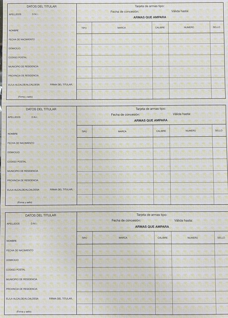 TARJETAS REGISTRO AMARILLA ARMAS 4º CATEGORIA