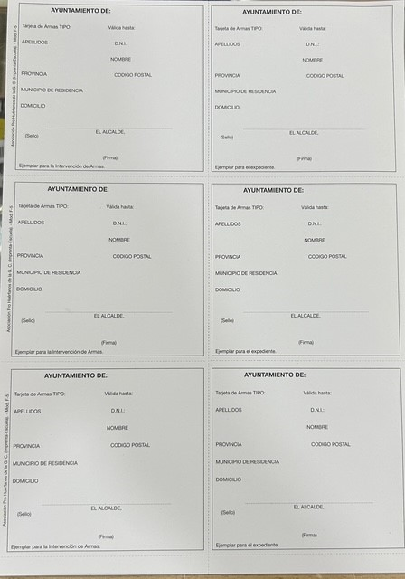 TARJETAS REGISTRO BLANCA AYUNTAMIENTO ARMAS 4º CATEGORIA